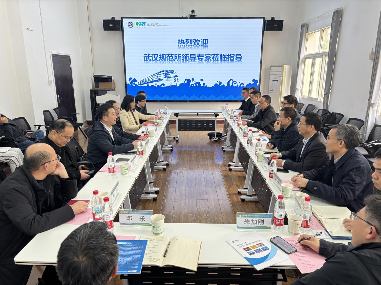11月11日下午,中国船级社武汉规范研究所党委书记刘东带队,副所长魏颖春、审图中心、工业部、综合部、党群办等部门负责人及技术专家一行到访船舶邮轮中心开展调研交流。学科首席教授、中心总工吴卫国,中心副主任孔祥韶教授,邮轮游艇设计研究所所长蔡薇教授、新型海洋装备研究所所长刘斌教授等专家参加了交流会。