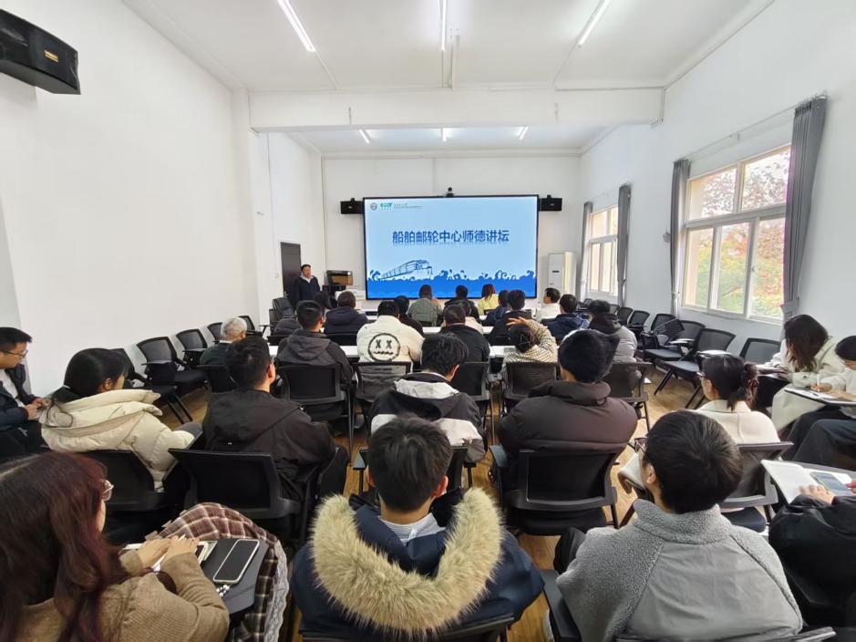 12月11日,船舶邮轮中心在余家头校区社科楼303举行了师德讲坛活动,中心全体教职工、研究生参与本次会议。本次师德讲坛由蔡薇教授主讲。