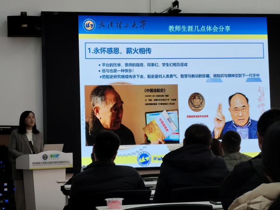 蔡薇教授首先分享了她带领团队在今年荣获全国船舶与海洋工程学科高等教育教学成果二等奖的申报经历,并围绕以席龙飞教授为首的老一辈专家带领武汉理工大学造船史研究中心,在船史研究领域取得的丰硕研究成果。她详细讲述了团队参与泉州湾宋代古船、南海1号等国内出土古船的测绘研究;出版《中国造船史》等著作;开设《中国造船史》等国家精品课程以及为国家各大涉船类博物馆复原古船模等先进事迹。